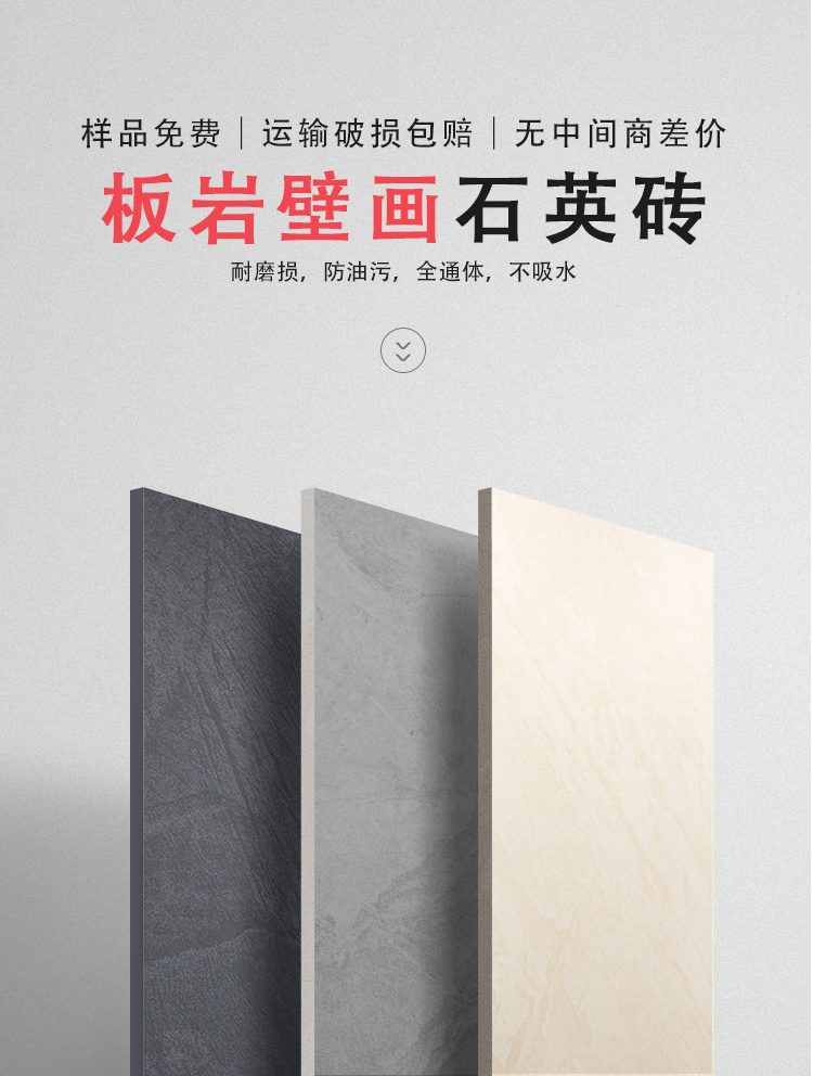 復(fù)刻板巖的自然層理紋路,觸感是細(xì)密的磨砂質(zhì)感,既保留石材的原生觸感,又因石英磚材質(zhì)更順滑耐用