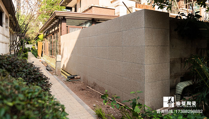 別墅的外墻是用一致的外墻瓷磚鋪成的,但也展現(xiàn)出特殊的品味。這種外墻磚表面紋路明晰,色彩濃度適中,氣質(zhì)尊貴高雅。
