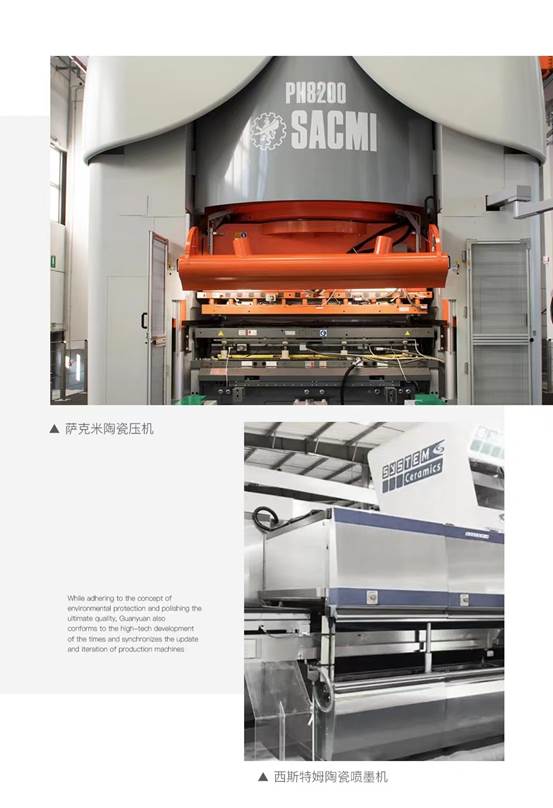 意大利知名品牌西斯特姆陶瓷噴墨機(jī)、百年陶機(jī)巨頭薩克米陶瓷壓機(jī)等被選擇運(yùn)用,且為滿足市場需求,不斷堅(jiān)持在個(gè)性工藝與高端花色上的豐富與創(chuàng)新。目前生產(chǎn)線已能產(chǎn)出25/30mm厚度的石英磚產(chǎn)品;自主研發(fā)出大受市場好評的萊姆石、羽化田、奇波石、白云石等;石材樣板取自原廠地意大利,西班牙等名貴石材產(chǎn)區(qū),實(shí)現(xiàn)天然石材的陶瓷技術(shù)高度還原;數(shù)字化打印精密細(xì)致,更為磚面增添無限創(chuàng)想。