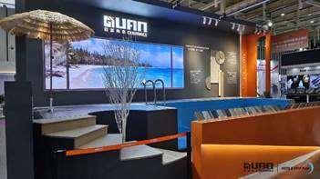 會(huì)上,冠源陶瓷以“模擬泳池”實(shí)景陳列主題館震撼登場(chǎng),通過產(chǎn)品矩陣、動(dòng)感設(shè)計(jì)帶領(lǐng)觀眾共啟全新境界,以小見大、以載體展整體,向全行業(yè)及全球客戶展示冠源制造“真材實(shí)料”的創(chuàng)新工藝和“極致品質(zhì)”的非凡實(shí)力。
