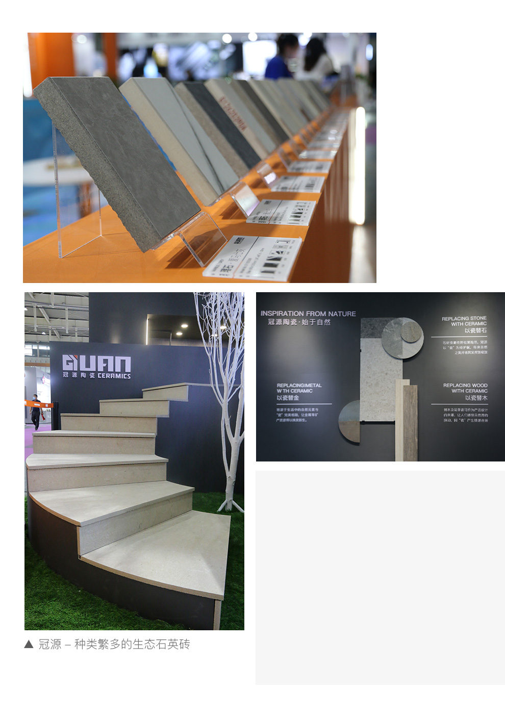 展會圓滿結(jié)束,冠源精彩繼續(xù)!期待接下來,用“冠源磚”鋪就的更多璀璨華麗之路,以“冠源磚”筑造的更多和諧自然生態(tài)人居!
